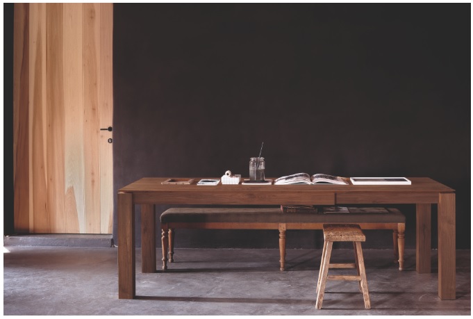 Slice est une table à manger avec un caractère unique, mais nous avons ajouté un petit plus. Cette table peut facilement être allongée sans interruption du motif du grain du bois.